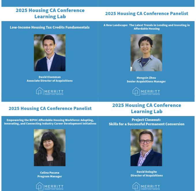 Merritt Community Capital Corporation is a mission-oriented affordable housing funder that serves the state of California. For more than 35 years, Merritt has been a trusted partner, investing more than $1.6 billion and creating over 12,000 affordable homes across California. Beyond investing in properties, Merritt invests in people. Through its Commitment to California initiative (C2C), Merritt proudly spearheads programs across the state that attract, train, and retain current and future affordable housers.